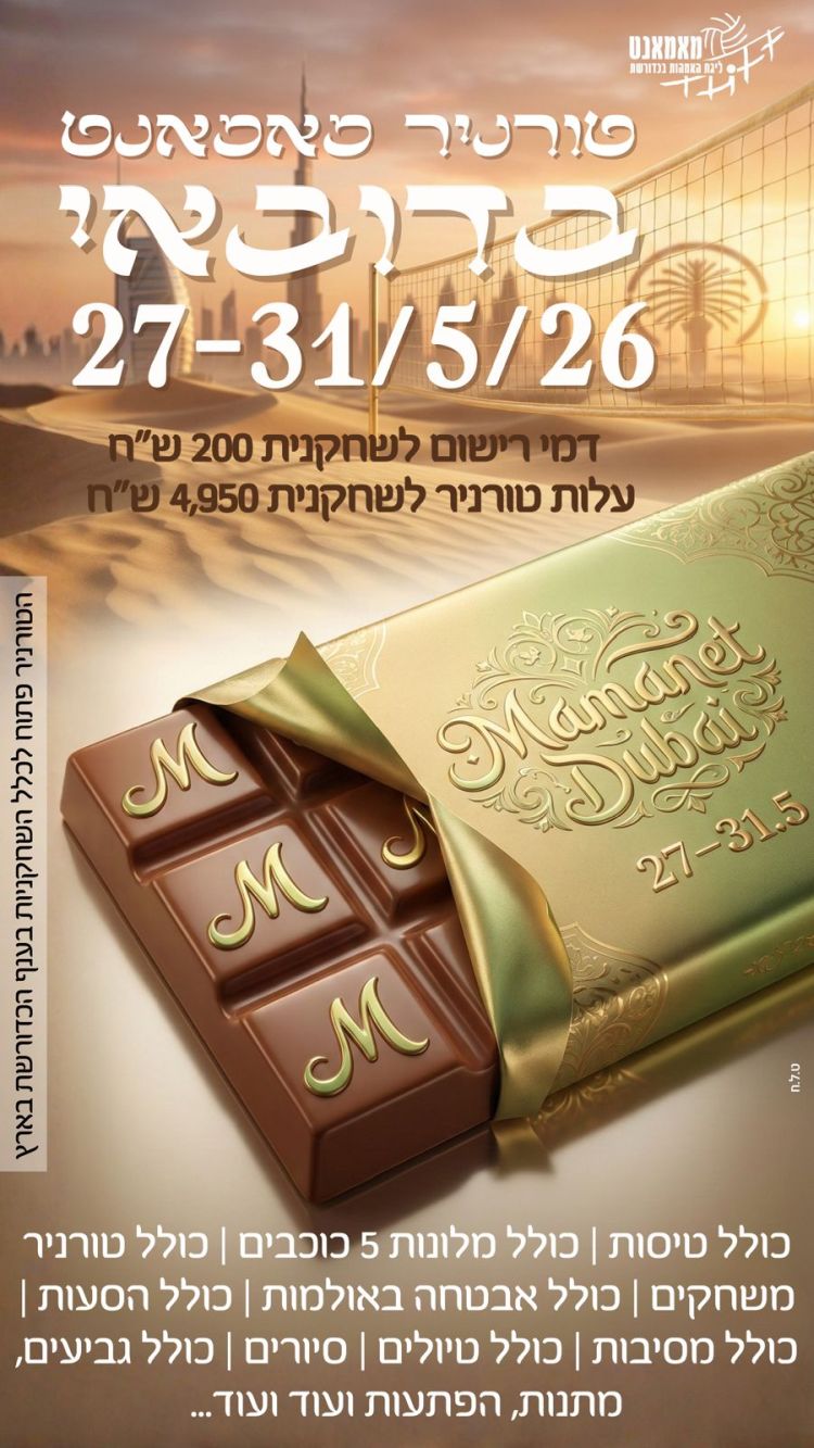 • התשלום המלא לטורניר מול חברת הנסיעות יסתיים בתאריך 22.12.