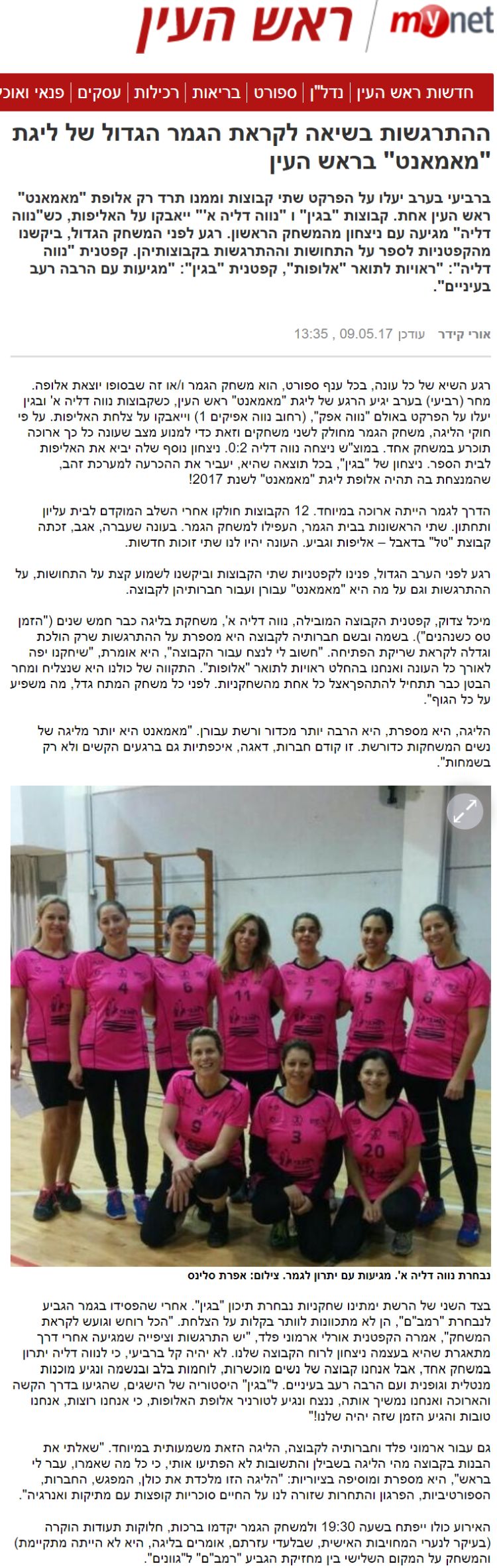 קישור לכתבה: ההתרגשות בשיאה לקראת הגמר הגדול של ליגת "מאמאנט" בראש העין