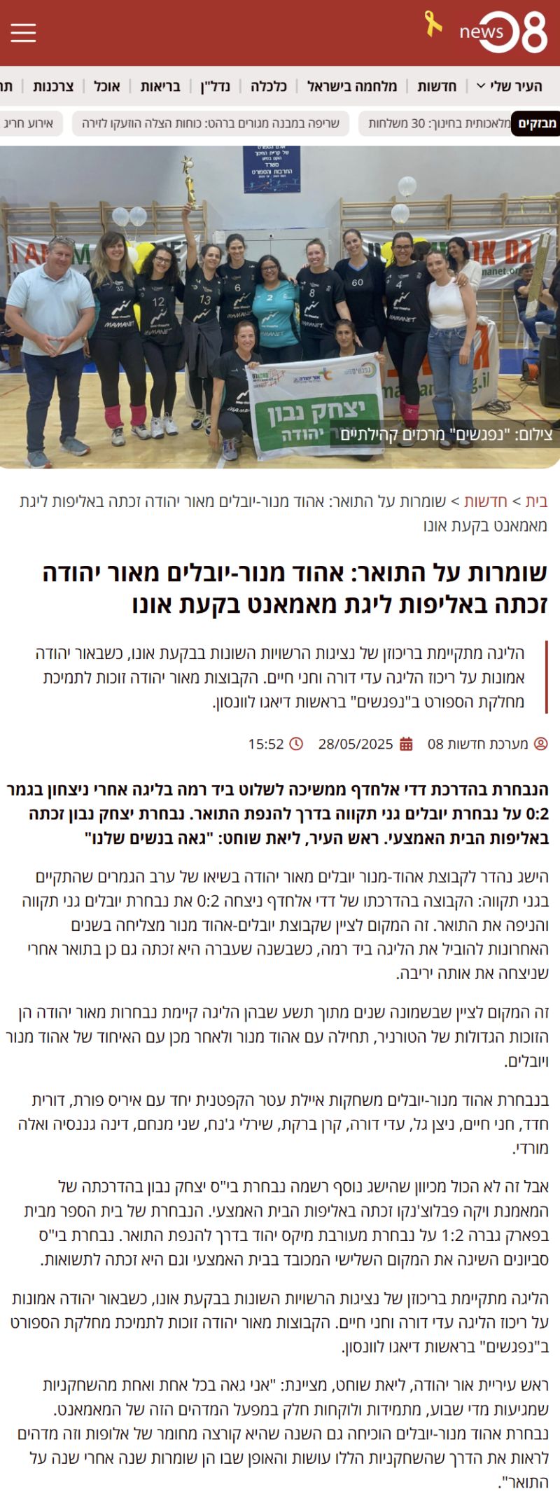 שומרות על התואר: אהוד מנור-יובלים מאור יהודה זכתה באליפות ליגת מאמאנט בקעת אונו