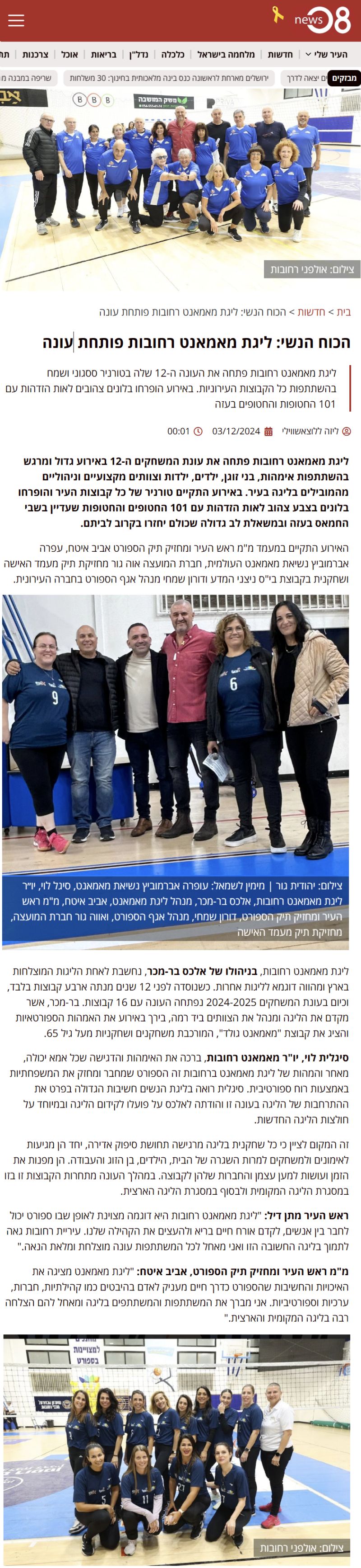 ליגת מאמאנט רחובות פתחה את העונה ה-12 שלה בטורניר ססגוני ושמח בהשתתפות כל הקבוצות העירוניות. באירוע הופרחו בלונים צהובים לאות הזדהות עם 101 החטופות והחטופים בעזה