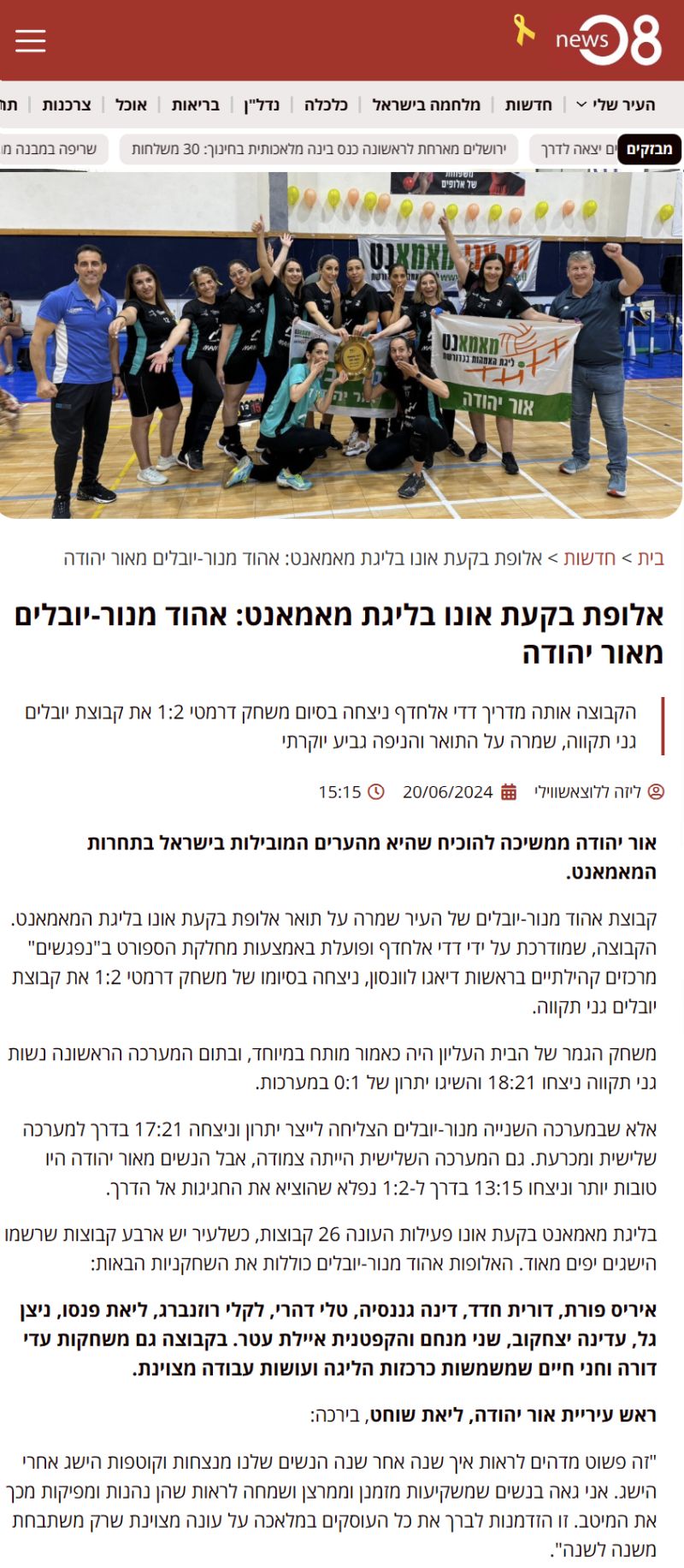 אלופת בקעת אונו בליגת מאמאנט: אהוד מנור-יובלים מאור יהודה