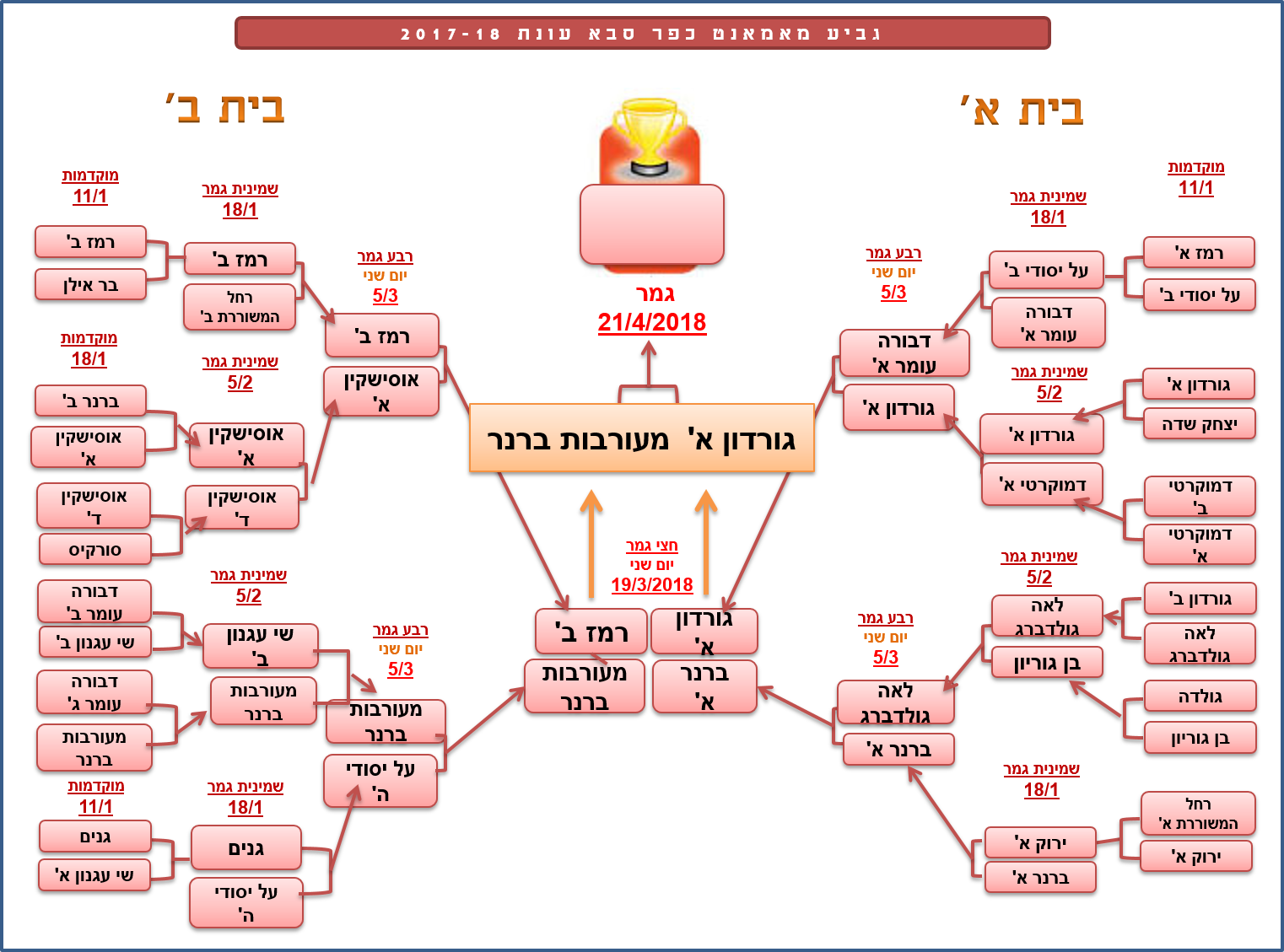 | שעה | מגרש | קבוצה א' | קבוצה ב' | מע' 1 | מע' 2 | מע' 3 | סה"כ | תוצאה |