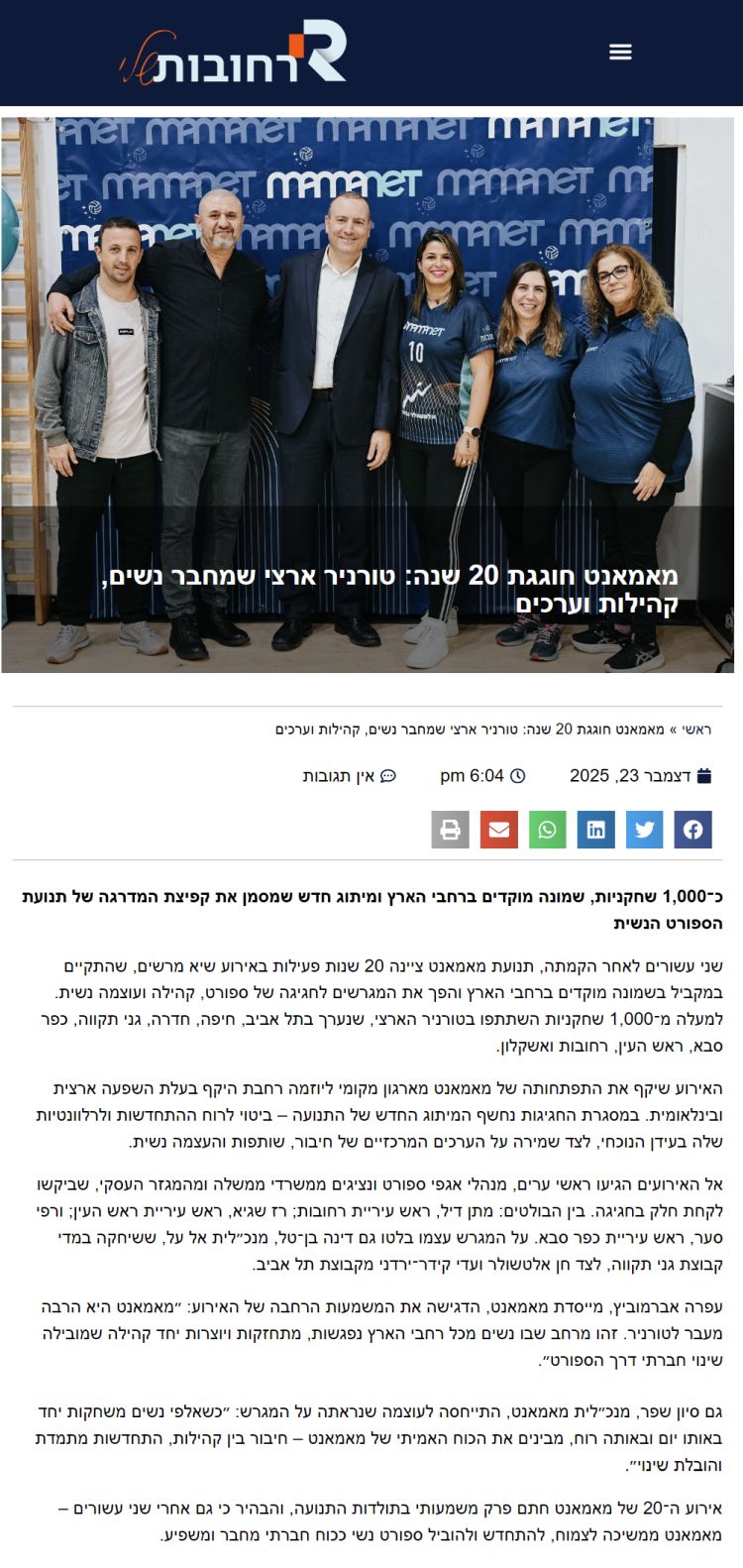 מאמאנט חוגגת 20 שנה: טורניר ארצי שמחבר נשים, קהילות וערכים