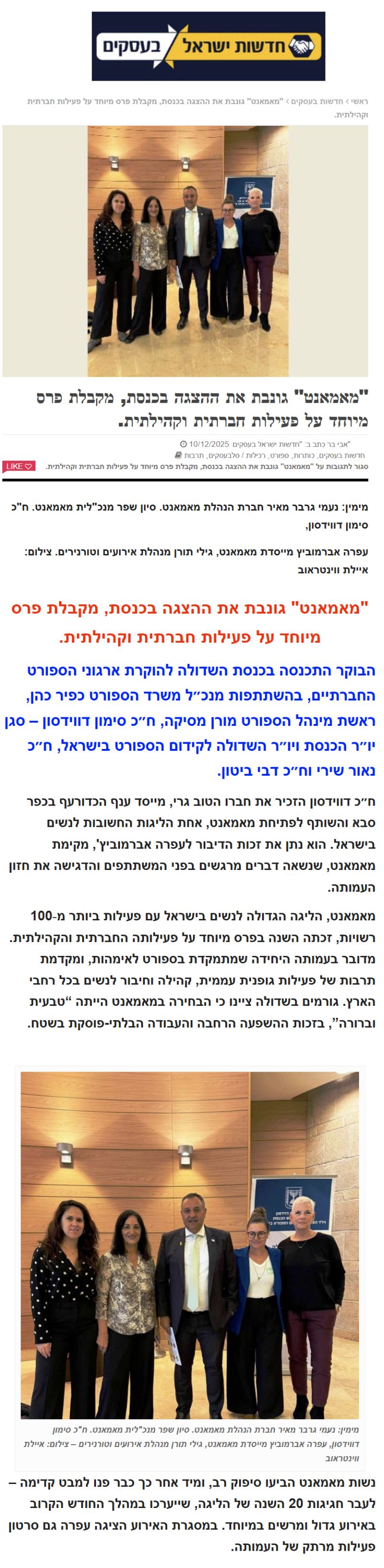 "מאמאנט" גונבת את ההצגה בכנסת, מקבלת פרס מיוחד על פעילות חברתית וקהילתית.