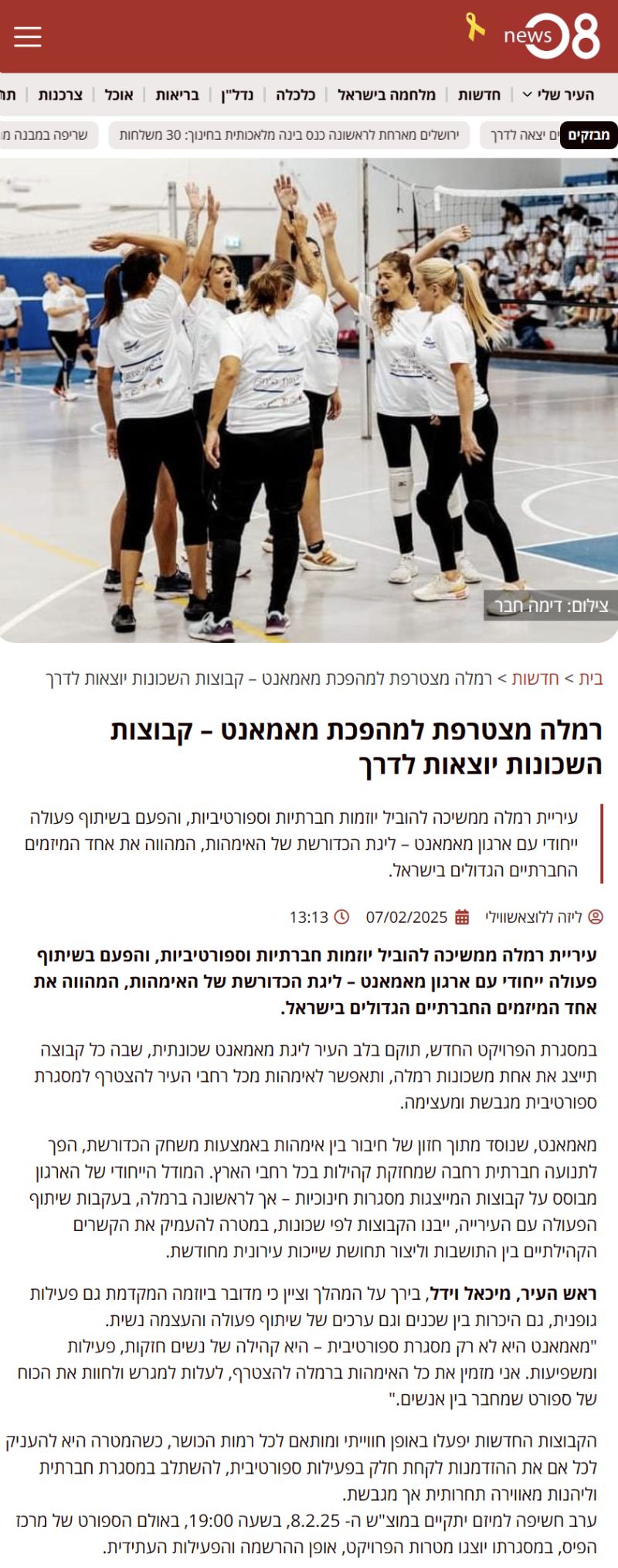 עיריית רמלה ממשיכה להוביל יוזמות חברתיות וספורטיביות, והפעם בשיתוף פעולה ייחודי עם ארגון מאמאנט – ליגת הכדורשת של האימהות, המהווה את אחד המיזמים החברתיים הגדולים בישראל.